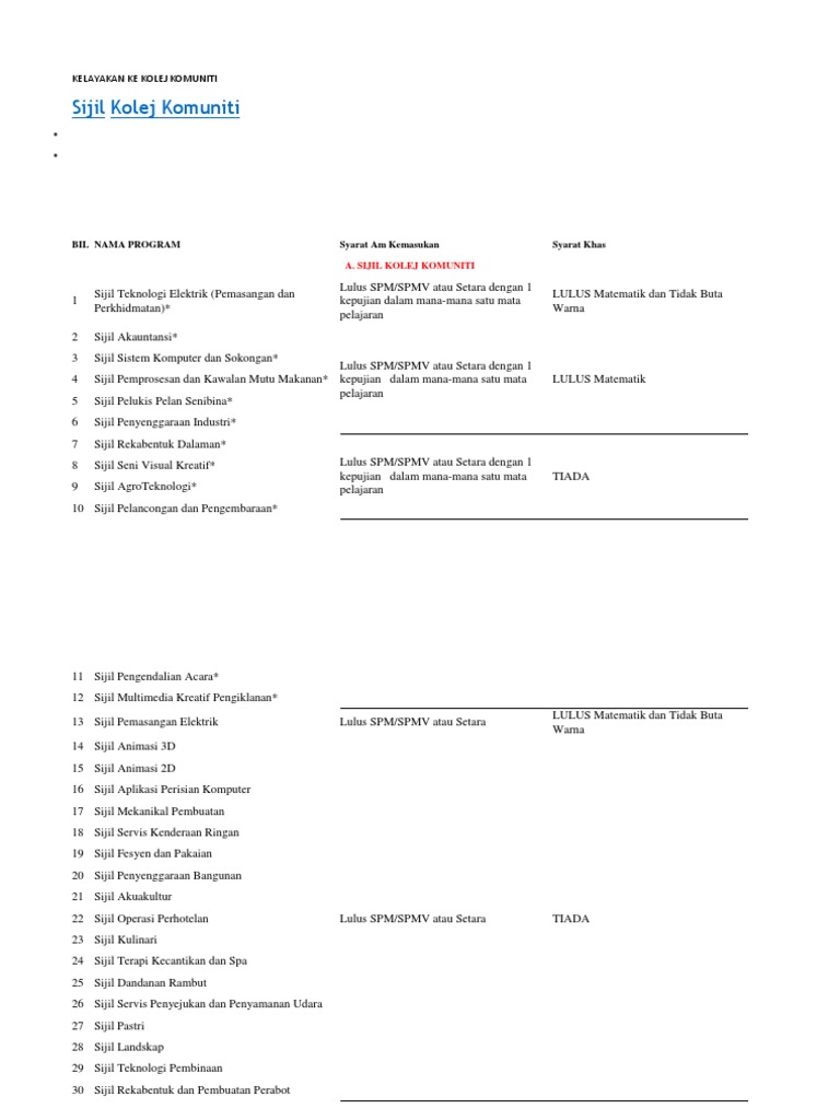 Sijil kolej komuniti bermodular tanpa spm. Empat 4 program pengajian yang ditawarkan di kolej komuniti adalah. Sijil kemahiran khas politeknik ketidakupayaan pendengaran. Tempoh pengajian pula adalah 18 ke 24 bulan secara sepenuh masa.
