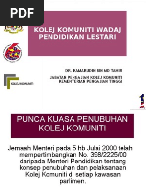 Panduan Pelaksanaan Program Pengajian Kolej Komuniti Kementerian Pendidikan Malaysia Pdf Free Download
